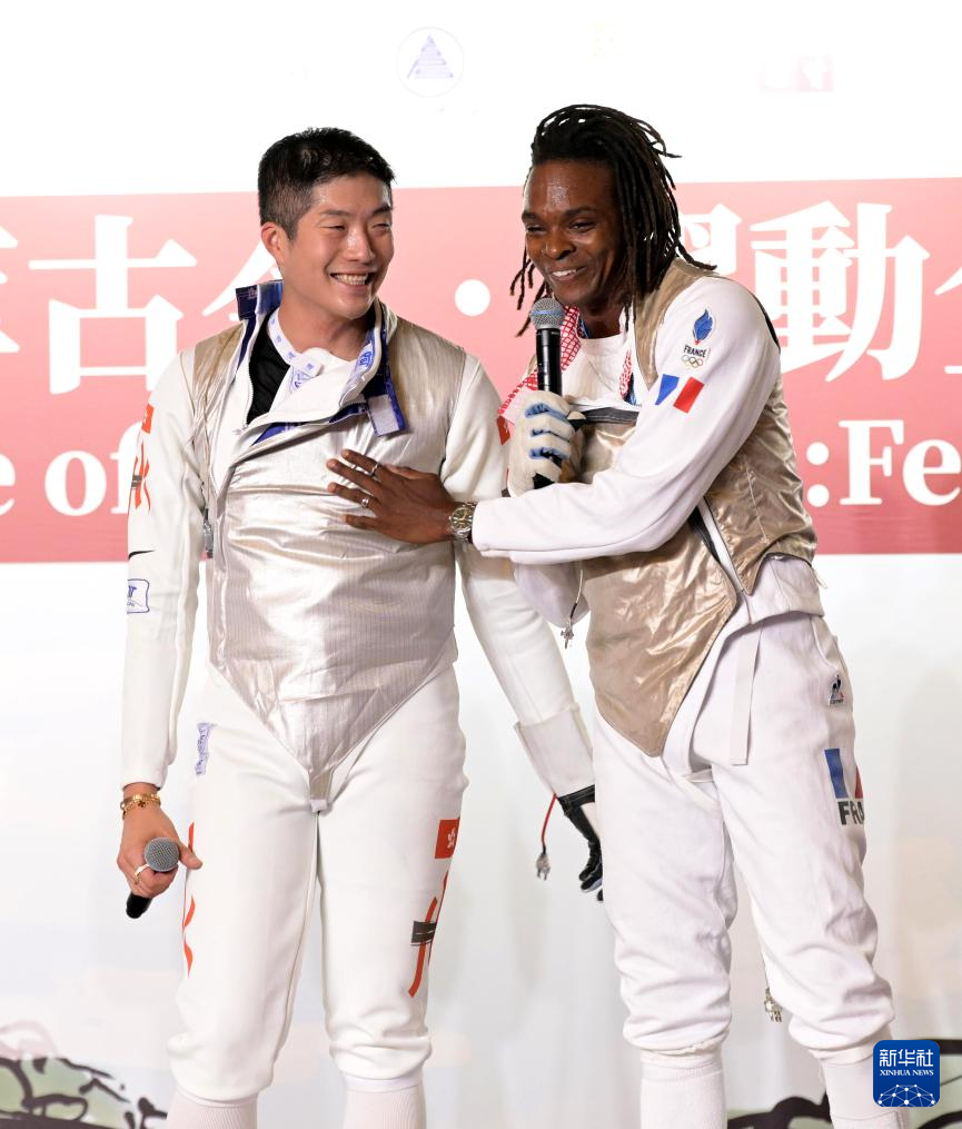 8月26日,奧運(yùn)會(huì)冠軍、中國(guó)香港選手張家朗(左)與奧運(yùn)會(huì)冠軍、法國(guó)選手勒福爾在花劍表演賽后。