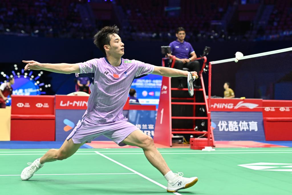 另一位中國隊球員李詩灃連贏兩局淘汰印度尼西亞選手法漢。
