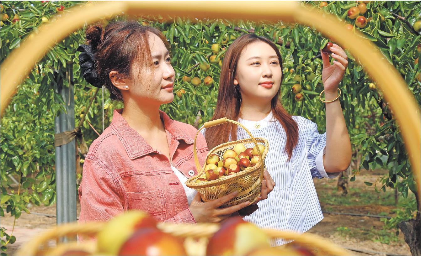 9月21日,濱州沾化區(qū)一冬棗基地,游客在摘冬棗。(□通訊員李秀玲報(bào)道)