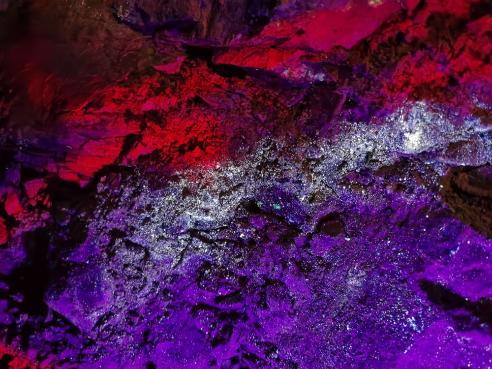 白鎢礦是一類特殊的礦種,在紫外光照射下會(huì)發(fā)出藍(lán)色熒光,勘探時(shí)需在夜晚用紫外燈照射巖心來檢驗(yàn),這意味著趙博和同事們結(jié)束白天的工作后,晚上10點(diǎn)還要再次上山。他說,礦區(qū)位于海拔4000多米的山上,臨近中秋,夜間氣溫已低至0℃,他們要在寒冷的野外工作到凌晨12點(diǎn)左右才能回到項(xiàng)目部。但趙博自得其樂:“紫外光照礦很震撼。亮燈的瞬間,漫山遍野的淺藍(lán)色光點(diǎn)亮起,就像星空撒進(jìn)山巖中?!?/p>
