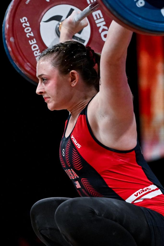 里夫斯是巴黎奧運會女子71公斤級冠軍。本次世錦賽她升到了77公斤級。比賽中,她以抓舉123公斤、挺舉155公斤和總成績278公斤連刷三項世界紀錄,實力碾壓其他29位參賽者。