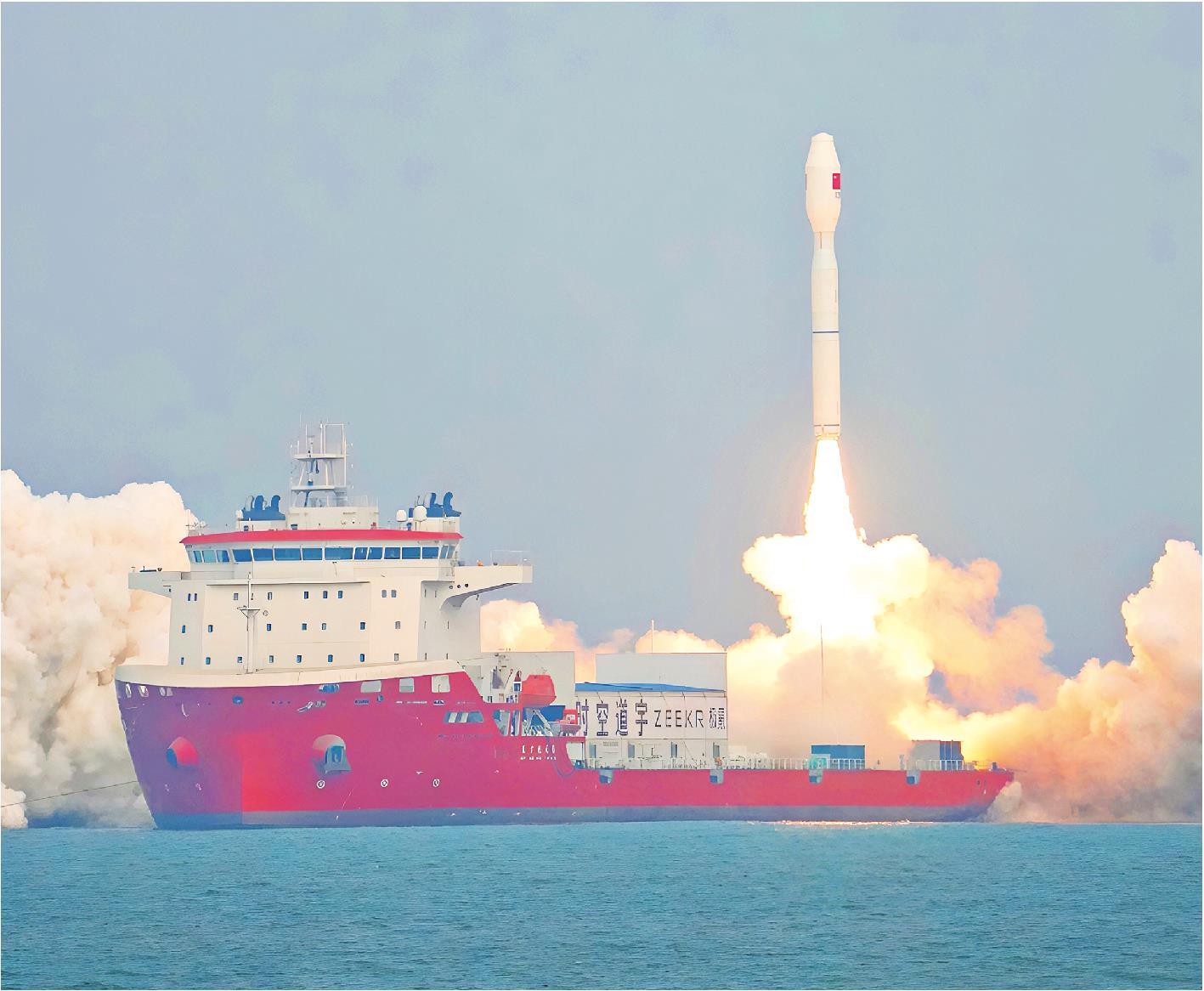 碧波之上,晨光熹微?!耙σ惶枺ㄟb二)·海瀾之家號”運載火箭靜靜矗立在黃海海域的發(fā)射平臺上,引弓待發(fā)。