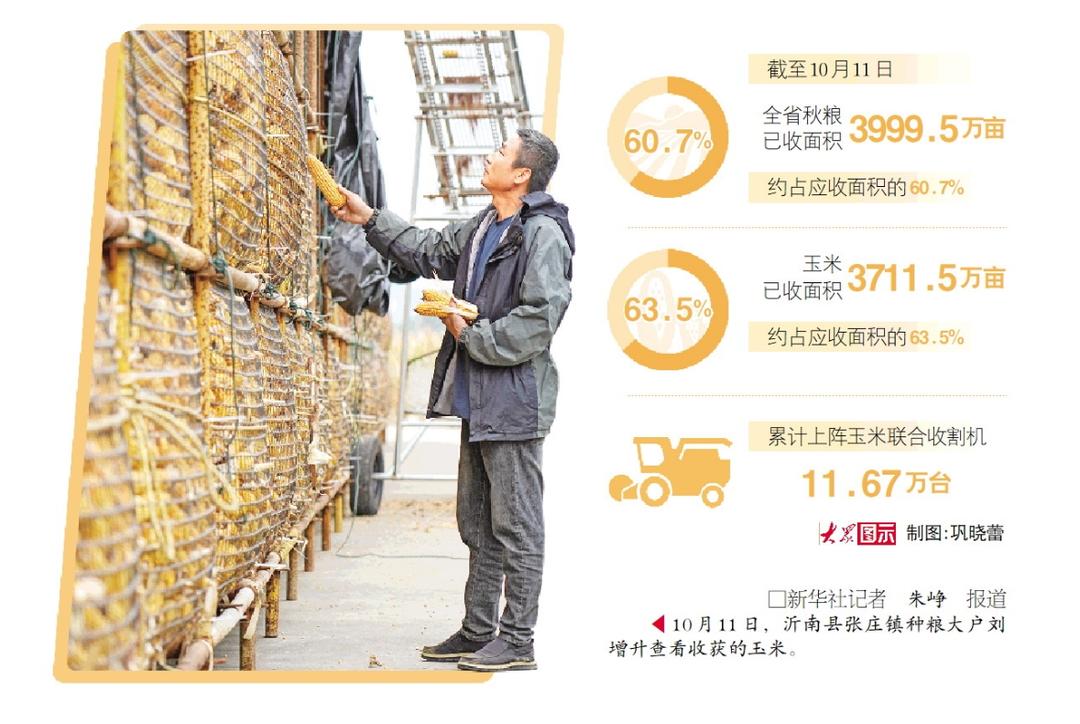 10月11日,沂南縣張莊鎮(zhèn)種糧大戶劉增升查看收獲的玉米。