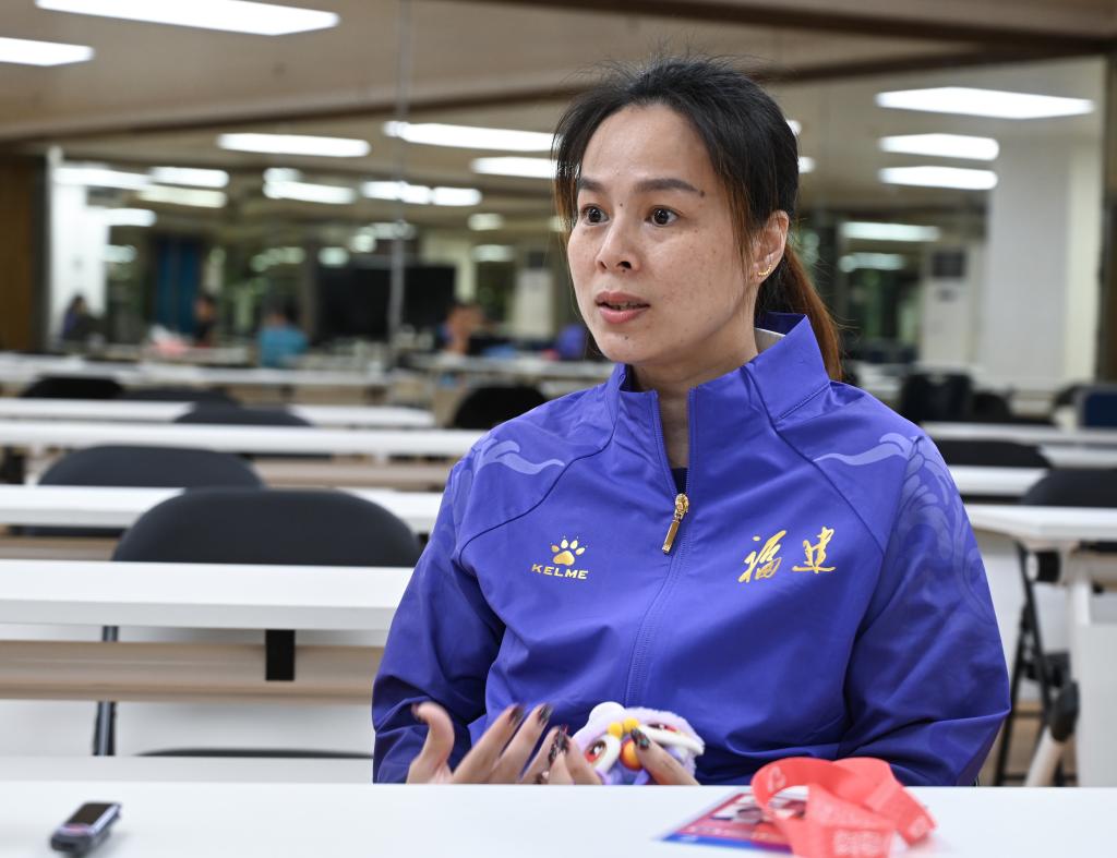 記者近日在廣州體育館見到了她——梳著馬尾,手里拿著醒獅造型的十五運(yùn)會(huì)吉祥物,一身福建隊(duì)紫色隊(duì)服,依然保留著當(dāng)年運(yùn)動(dòng)員時(shí)期的颯爽英姿。