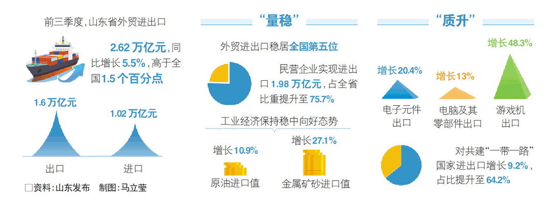 前三季度山東外貿(mào)進(jìn)出口2.62萬(wàn)億元,抗風(fēng)險(xiǎn)能力增強(qiáng)