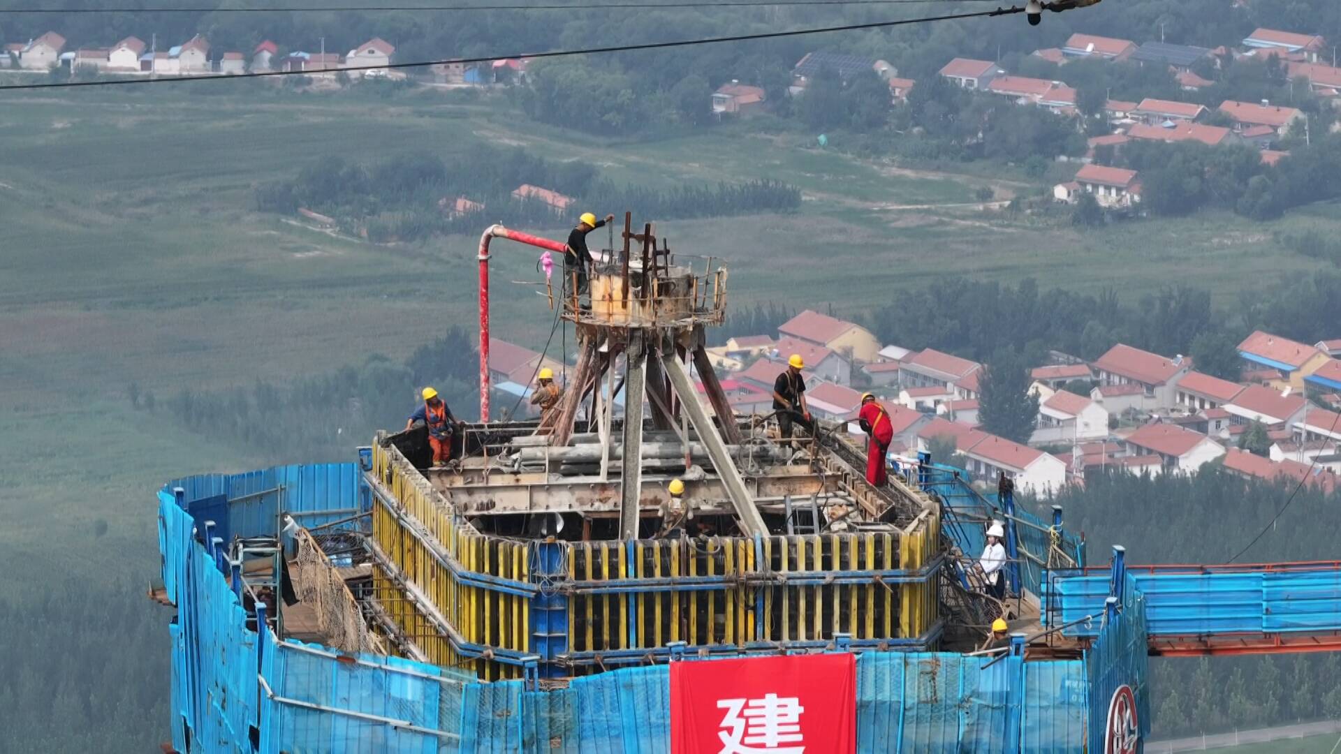 9月16日,“黃河第一跨”津濰高鐵東營黃河公鐵大橋兩座主塔全部封頂。