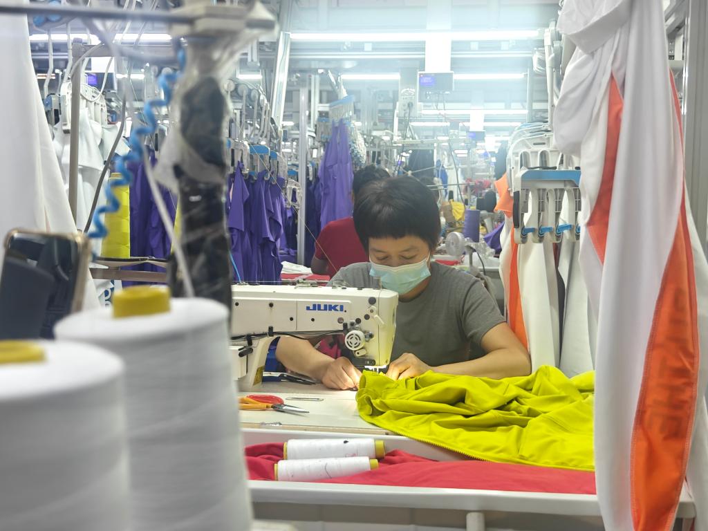 走進(jìn)位于赫山區(qū)泥江口鎮(zhèn)的益陽(yáng)市湘銀之舞服飾有限公司車(chē)間,五顏六色、令人眼花繚亂的生產(chǎn)線一片忙碌。工人在智能裁床、智能吊掛系統(tǒng)等現(xiàn)代化設(shè)備的幫助下,最快幾十秒就可以完工一件廣場(chǎng)舞服。