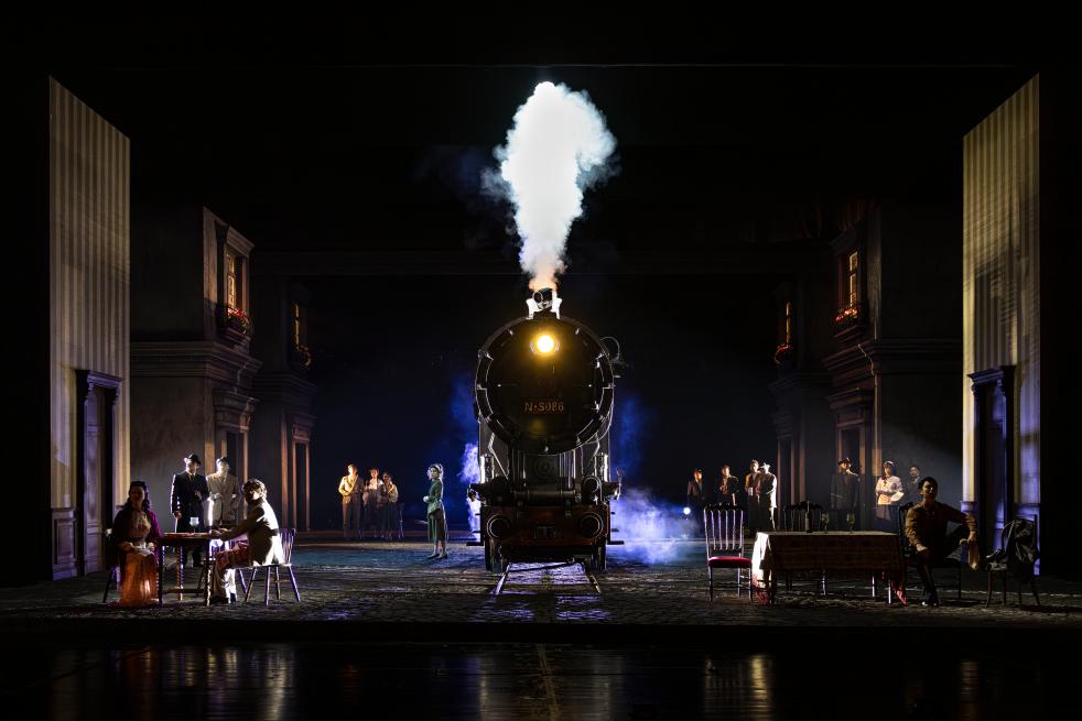 不同于老版的寫實(shí)內(nèi)景,這一版演出舞臺(tái)設(shè)計(jì)以外景為主,一列老式蒸汽火車隨劇情推進(jìn)在臺(tái)上行進(jìn)、旋轉(zhuǎn)。何冰說(shuō),火車這一意象,一方面以視覺(jué)壓迫感象征戰(zhàn)爭(zhēng)在人們心中投下的深深恐懼,一方面也蘊(yùn)含“它也可以帶我們?nèi)ミh(yuǎn)方”的溫暖希望。(記者白瀛)