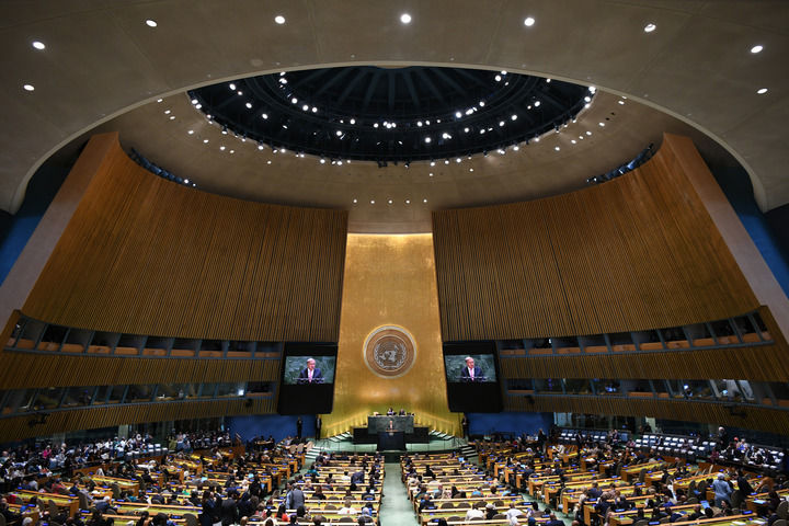 這是2025年9月22日在位于紐約的聯(lián)合國總部拍攝的聯(lián)合國大會紀(jì)念北京世婦會30周年高級別會議現(xiàn)場。新華社記者 李睿 攝