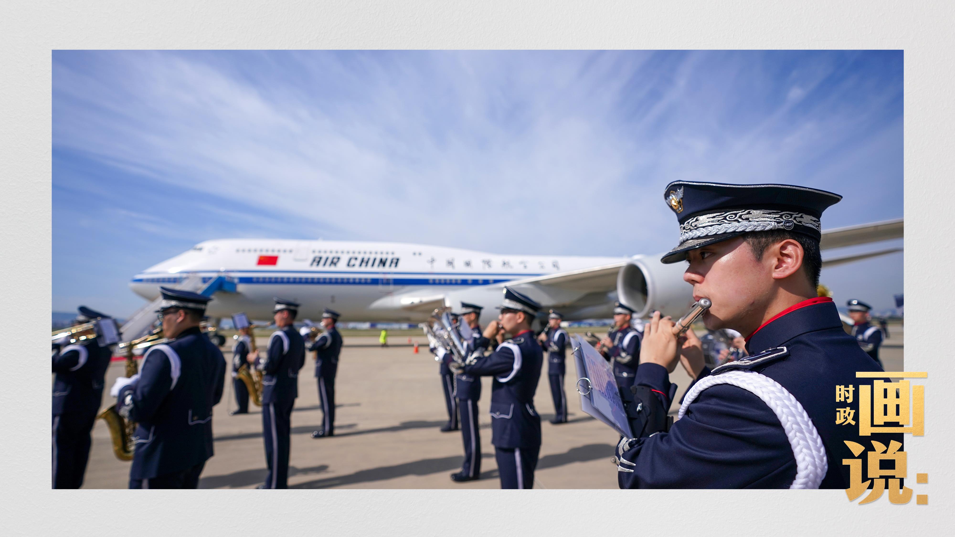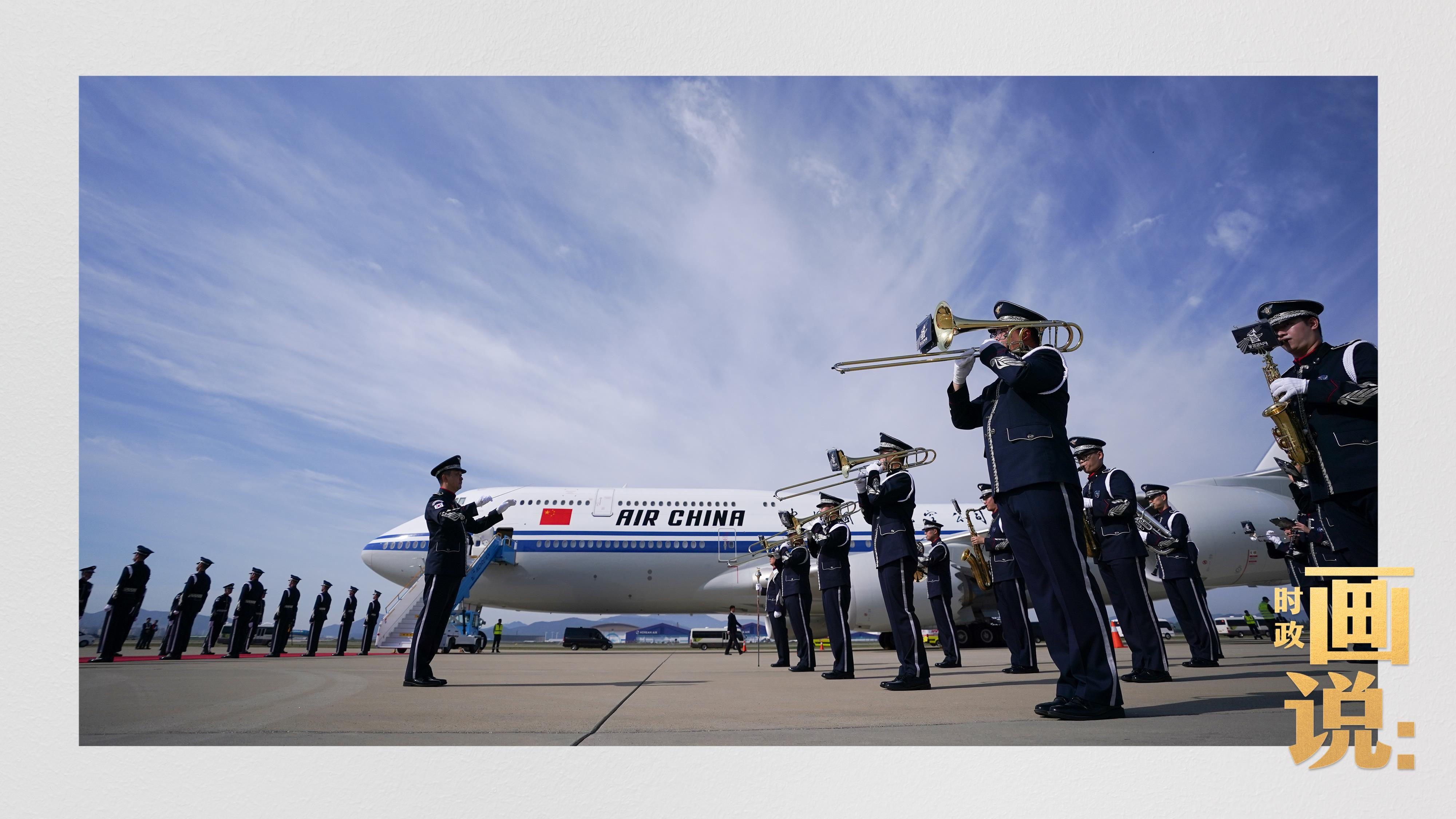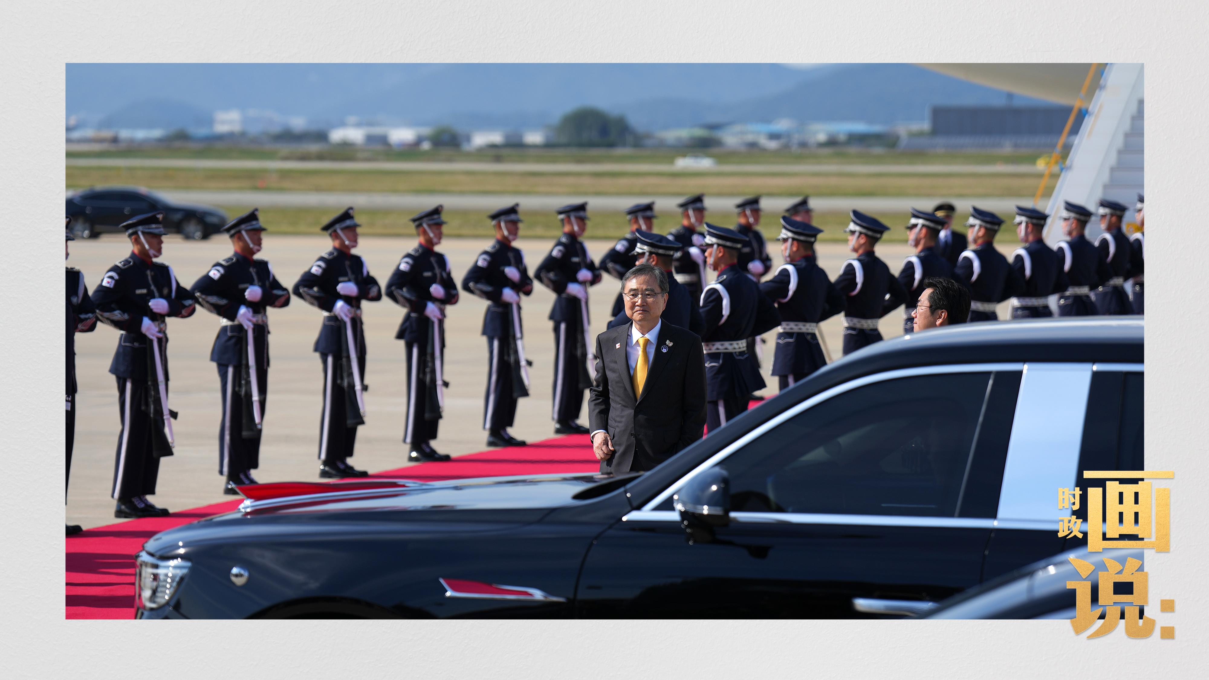 習(xí)近平抵達(dá)釜山金海國際機場時,韓國外長趙顯等高級官員熱情迎接。禮兵分列紅地毯兩側(cè)致敬,軍樂團(tuán)演奏行進(jìn)樂,機場鳴放21響禮炮。