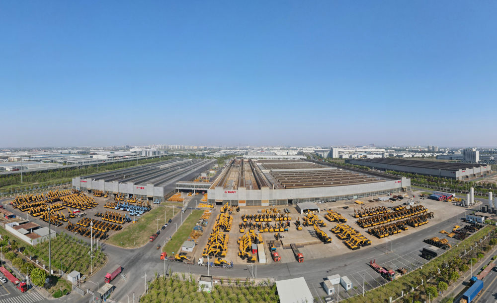 空中俯瞰上海三一重機(jī)股份有限公司外景(無人機(jī)全景照片,2025年4月15日攝)。新華社記者 方喆 攝