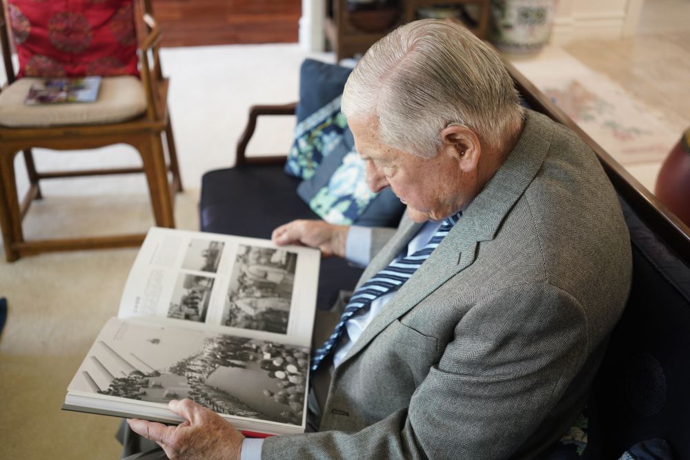 在位于美國(guó)舊金山灣區(qū)的家中,耄耋之年的伊斯特布魯克接受新華社記者專訪時(shí),特意翻出了一張日本在“密蘇里”號(hào)戰(zhàn)列艦上簽署無(wú)條件投降書的老照片,用手指著照片中甲板上軍官站立的一側(cè),“史迪威就在這里”。